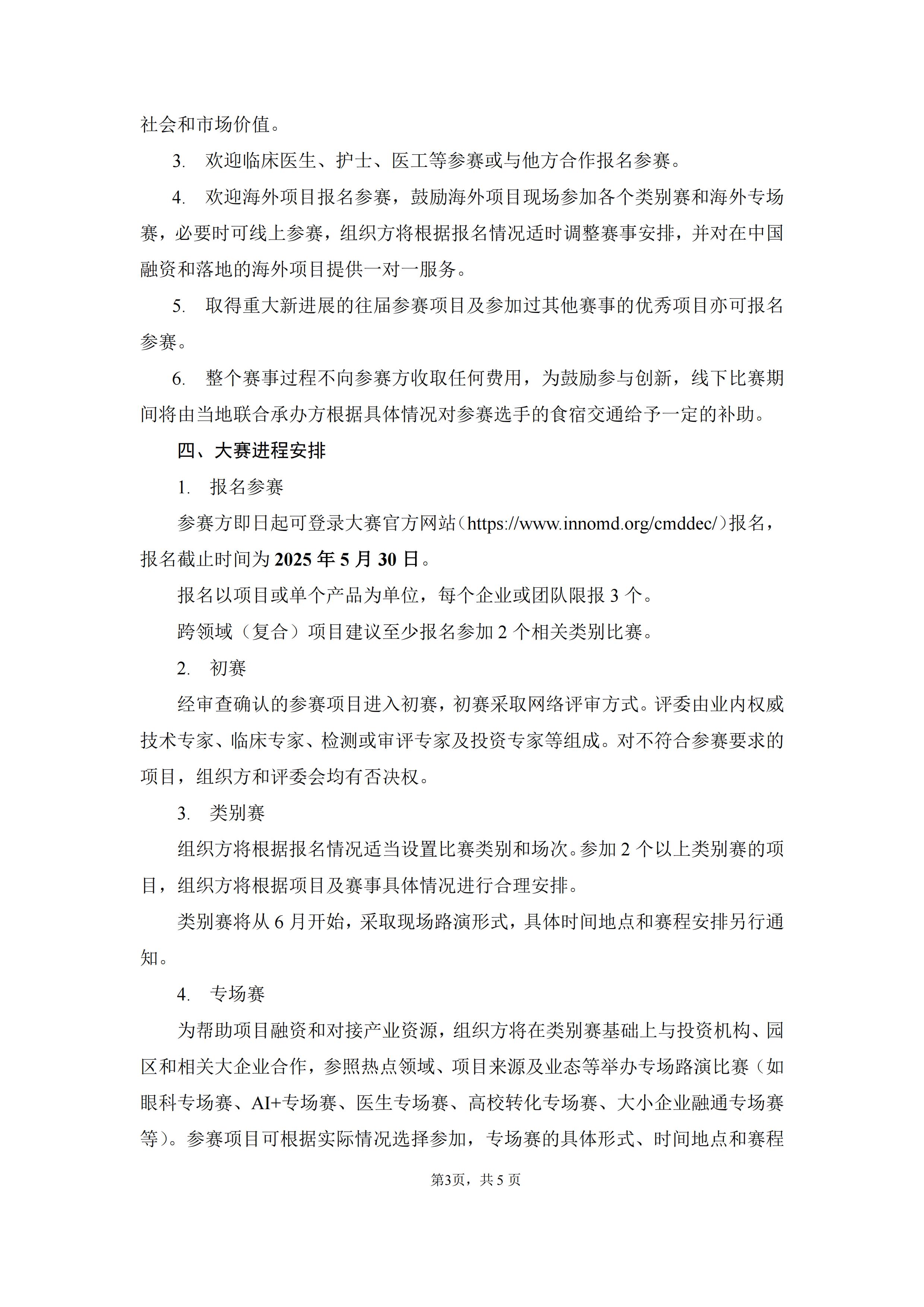 参赛方即日起可登录大赛官方网站(医疗器械创新网网://szjsztc.com/cmddec/)报名,报名截止时间为2025年5月30日。
